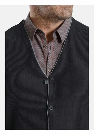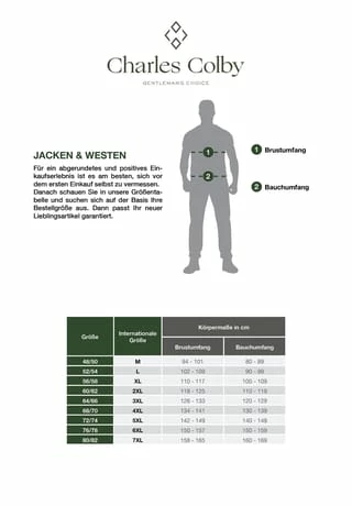 Charles Colby bietet britischen Chic für Herrenmode in großen Größen. Aparte Weste mit harmonischem Kontrast: Strickweste KEVAN umschmeichelt seinen Träger und setzt ihn wirksam in Szene. Strukturstrick und ein feiner Kontrast sind alles, was diese exquisite Weste braucht. Warten Sie nicht auf die nächste Feierlichkeit, KEVAN kann man nach Lust und Laune kombinieren. 50% Baumwolle, 50% Polyacryl. Maschinenwäsche.