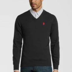 U.S. POLO ASSN. Strickpullover Pullover V-Ausschnitt Schwarz