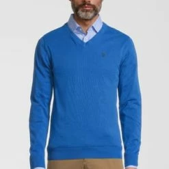 U.S. POLO ASSN. Strickpullover Pullover V-Ausschnitt Royal Blau