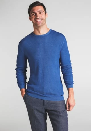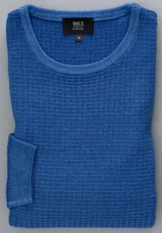 Cool oder businesstauglich? Mit diesem unifarbenen Herrenpullover in Waffeleisen-Struktur, aus unserem Premiumsegment 1863 by ETERNA, mit Rundhalsausschnitt ist alles möglich. Die hochwertige Qualität aus 100% Wolle (Merino) ist wunderbar weich und verleiht einen hohen Tragekomfort. Die leicht taillierte Passform spricht all diejenigen an, die den klassischen Look etwas modischer interpretieren wollen. Schurwolle ist ein Naturprodukt, reguliert Wärme und Feuchtigkeit und unterstützt ein gesundes Hautklima – einfach ein Pullover zum Wohlfühlen. Dieser Strickpullover ist die perfekte Wahl bei Wind und Wetter und ein wahres Allroundtalent. Worauf also warten? Heute noch dieses Highlight aus unserer Kollektion bestellen – Sie werden dieses kombinationsstarke, hochwertige Strickteil mit Sicherheit nicht mehr missen wollen.
