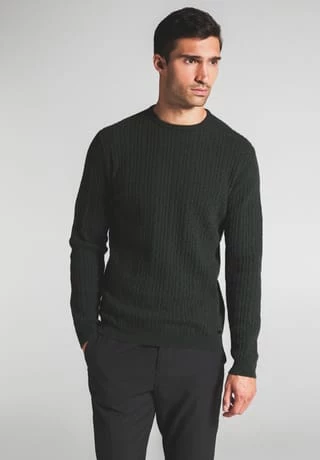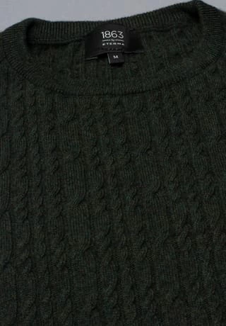 Aus unserer Premiumlinie “1863 by ETERNA“! Für alle styleverliebten Männer bieten wir diesen schönen Rundhals-Pullover mit angesagtem Zopfmuster an. Das tragefreundliche, edle Material aus 30% Kaschmir und 70% Wolle (Merino) macht dieses Strickteil wunderbar weich und es trägt sich so angenehm, dass man den Pullover gar nicht mehr ausziehen möchte. Die hochwertige Merino-Wolle kratzt nicht, wärmt wenn es kalt ist und kühlt bei wärmerenTemperaturen. Der Pullover besitzt somit eine hervorragende Temperaturregulierung und Atmungsaktivität Alles Eigenschaften, die ein wirklich guter Pullover braucht. Kombiniert mit Jeans und trendigen Sneakers ist dieses Strickteil ein idealer Kombinationspartner für ein lässiges Outfit. Mit Sakko und feiner Hose ist der Pullover aber auch im Handumdrehen bürotauglich gemacht. Bestellen Sie noch heute, denn dieser Herren-Strickpullover ist ein absolutes Must-have!