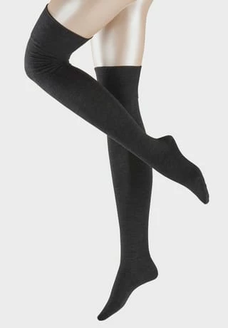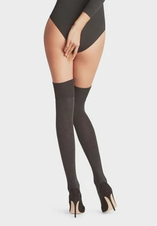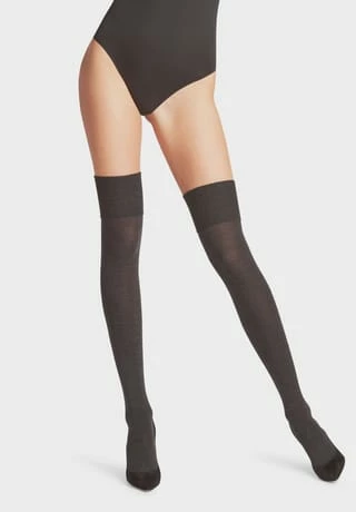 Dank der innovativen Kombination von warmer, weicher Merinowolle auf der Außenseite und hautsympathischer Baumwolle auf der Innenseite sorgen diese modernen Strick-Overknees für eine hervorragende Klimaregulation und einen außergewöhnlichen Tragekomfort. Egal ob zu Stiefeln, oder in Kombination mit Halbschuhen, die Beine werden jederzeit gekonnt in Szene gesetzt. Das unifarbene Design verleiht dabei eine elegante Optik. Abgerundet wird das Gesamtbild durch die perfekte Falke-Passform.