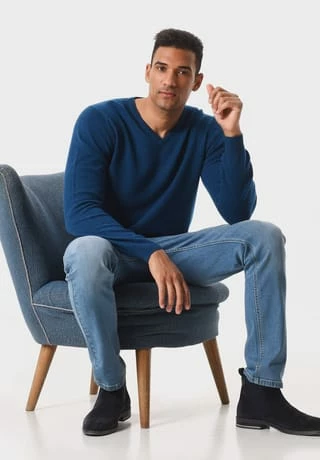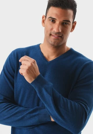 der ansprechende Look wird durch den v-förmigen Ausschnitt und die gerippten Abschlüsse an den Ärmeln und dem Saum abgerundet