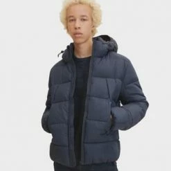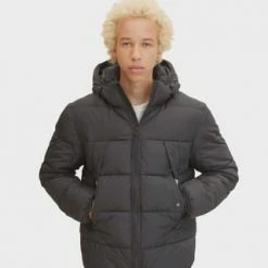 JACK & JONES Herren Jacke JJERECYCLE PUFFER COLLAR – Steppjacke, Kapuze, Einfarbig Grau