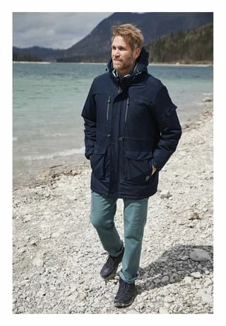 JAN VANDERSTORM ist Ihr Experte für Herrenmode in großen Größen. Die Jacke CASTEN ist ein echtes Multitalent! Die Kapuze mit Kontrastfutter, der integrierte Tunnelzug an der Taille und die Ärmelsäume lassen sich in der Weite verstellen und der gestrickte, gestreifte Stehkragen sowie der durch eine Druckknopfleiste verdeckte Reißverschluss schützen vor Wind. In den acht verschließbaren Außen- und Innentaschen können Sie alles sicher verstauen, was Sie unterwegs brauchen. Wie schon der Aufnäher mit Steuerrad und Anker am rechten Ärmel zeigt, macht sich CASTEN am besten an der Küste, am Hafen und auf dem Wasser. Aber bestimmt finden Sie jede Menge anderer Einsatzmöglichkeiten für Ihre neue Lieblingsjacke. Und bestimmt entdecken Sie in der Kollektion von JAN VANDERSTORM weitere Hosen, Jeans und Oberteile, die zu zu CASTEN passen. Jo-ho! Comfort Fit. 100% Polyester. Maschinenwäsche.