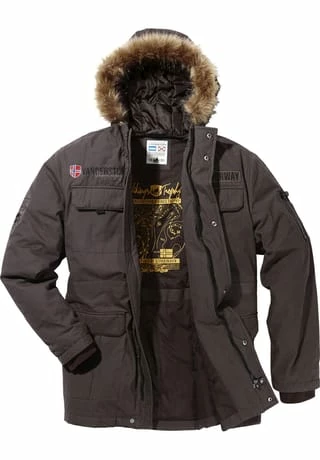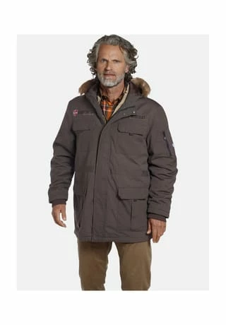 JAN VANDERSTORM ist Ihr Experte für Herrenmode in großen Größen. Auf Parka DOLF ist Verlass – mit leichter Wattierung wärmt er und ist dazu ungeheuer praktisch. Bei den vielen Taschen sind die Möglichkeiten fast grenzenlos – so kommen die unteren von den vier Vordertaschen mit einer Falte für Extraweite und sind mit Klettverschluss zu schließen. Am Oberarm befindet sich eine Reißverschlusstasche mit zwei Fächern, die sich für Stifte anbieten – das kleine Kompass-Detail wiederholt sich am Reißverschluss – so wissen Sie immer wo sie hinmüssen. Falls es ungemütlich wird, setzen Sie die Kapuze mit Fellimitat auf und ziehen Sie den inneren Taillenzug enger, so schützt Sie DOLF vor zügiger Kälte. Die Applikationen aus Stickerei und Badge auf Brusthöhe und Ärmel, runden den maskulinen Look ab. Egal, auf welche Reise Sie sich begeben, Parka DOLF ist ein treuer Begleiter! 100% Baumwolle. Maschinenwäsche.