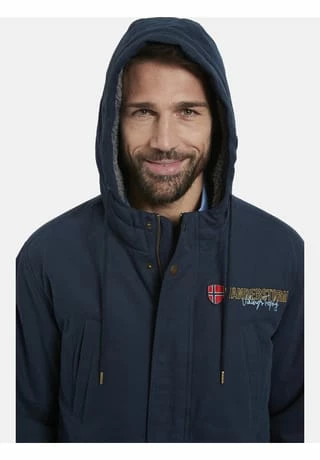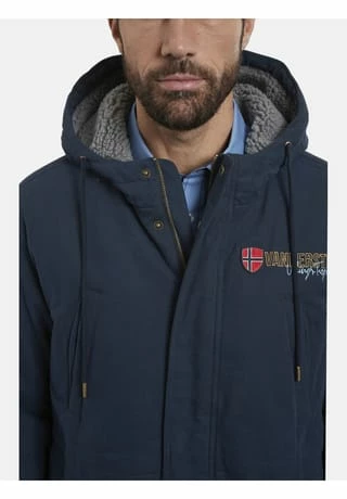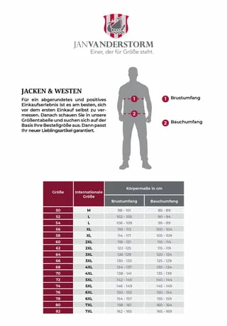 JAN VANDERSTORM ist Ihr Experte für Herrenmode in großen Größen. Dass in der Kollektion von JAN VANDERSTORM typische Parkas zu finden sind, beweist der Parka IRMFRIED schon mit seiner Außenseite aus reiner Baumwolle und dem typischen Schwalbenschwanz-Saum. Damit IRMFRIED winterlicher Kälte trotzen kann, hat er eine wärmende Wattierung, ein Futter aus Kunstfell an der weitenverstellbaren Kapuze und Tunnelzüge an der Taille und am Saum. Wichtig, wenn Sie draußen in der Natur unterwegs sind: die vier großen Außentaschen und die drei Innentaschen für Geldbörse, Ausweise und Handy. Die Hingucker an IRMFRIED: der Aufnäher und der gestickte Schriftzug in Brusthöhe, der bestickteAufnäher am rechten Ärmel sowie im Inneren das Futter mit aufgedruckten Seekarten und der Aufnäher am Nacken. Mit IRMFRIED sind Sie gegen Minusgrade perfekt gewappnet! Comfort Fit. 100% Baumwolle. Futter und Wattierung 100% Polyester. Maschinenwäsche.