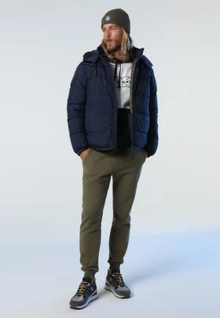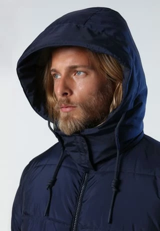 Olden Jacke aus wasserabweisendem, recyceltem Ripstop, mit recycelter Wattierung und abnehmbaren Kapuze. Lycra®-Bündchen garantieren ein angenehmes Tragegefühl. Der Kordelzug am Saum ermöglicht eine individuelle Passform.