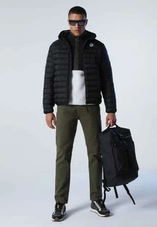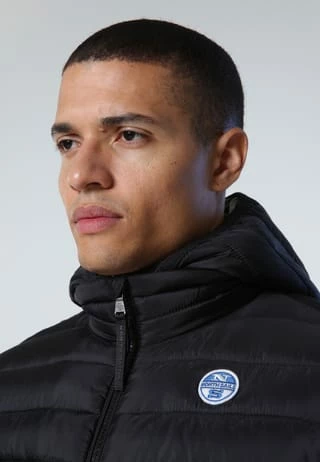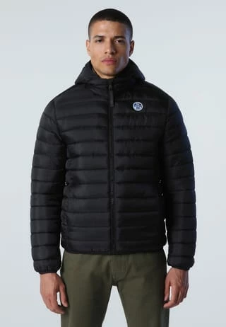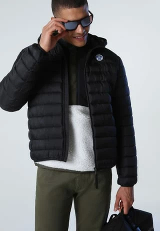 Pufferjacke aus recyceltem Mikro-Ripstop mit Repreve-Wattierung und gestreifter Steppung. Mit abnehmbarer Kapuze, Seitentaschen und Reißverschluss. Reguläre Passform für viele Figurtypen. North Sails-Aufnäher auf der Brust.