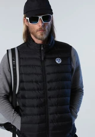 Skye Weste aus recyceltem Ripstop-Gewebe mit wasserabweisender Beschichtung. Mit Repreve-Wattierung: eine innovative Faser, die aus recycelten Plastikflaschen hergestellt wird. Stehkragen, Taschen und Reißverschluss mit Logo-Detail sorgen für volle Funktionalität.