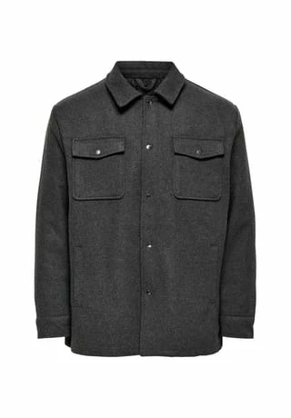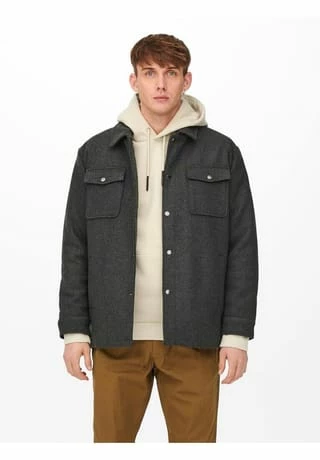 Hemdjacke aus Wolle Loose Fit Geknoepfte Vorderseite Lange Ärmel 2 Seitentaschen 2 Brusttaschen Vollstaendig mit Polyester gefuettert Laenge: 80 cm in Groesse L Das Model traegt Groesse L