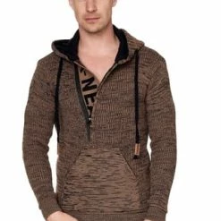 RUSTY NEAL Kapuzenpullover Mit Stylischem Ausschnitt Camel/ Navy