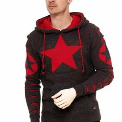 RUSTY NEAL Kapuzenpullover Mit Großem Stern-Design Anthrazit/ Rot