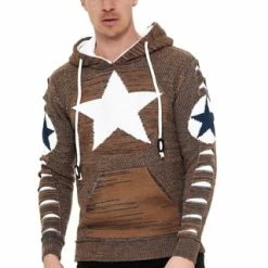 RUSTY NEAL Kapuzenpullover Mit Großem Stern-Design Camel/ Weiß