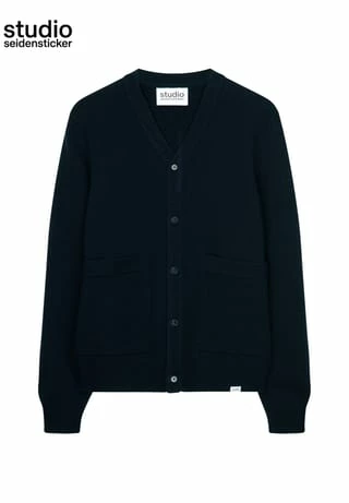 Strickjacke – softe Plain-Knitted-Qualität. V-Ausschnitt, unifarbenes Design und Logo-Detail.